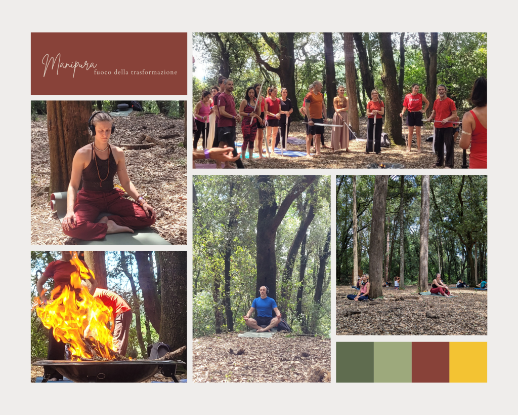 Alcuni dei momenti più memorabili sono stati il rituale del fuoco, durante il quale abbiamo simbolicamente bruciato le nostre paure, e la meditazione finale nel bosco, dove, immersi nella natura, abbiamo esplorato ciò che avevamo imparato con i sensi amplificati. Le sessioni di Kirtan sono state particolarmente piacevoli, creando un’atmosfera di profonda connessione e vibrazioni positive. Le pratiche di yoga ci hanno permesso di esplorare i Chakra in profondità sul piano fisico, mentre le sessioni di meditazione e i laboratori esperienziali hanno favorito una consapevolezza più concreta degli stati di coscienza, stimolando una comprensione profonda a livello mentale e spirituale.