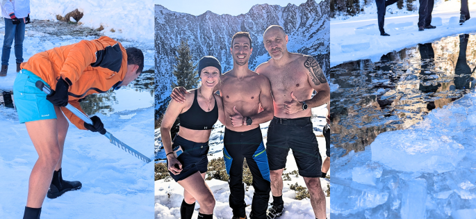 Una volta pronto il varco, ci siamo concentrati, spogliati e siamo entrati nel lago per il primo vero bagno ghiacciato fino alle spalle. Unโesperienza intensa, ma gestita con grande consapevolezza grazie alla respirazione e alla preparazione. Dopo esserci riscaldati, ci siamo rivestiti e ci siamo gustati un delizioso brunch preparato dal rifugio.